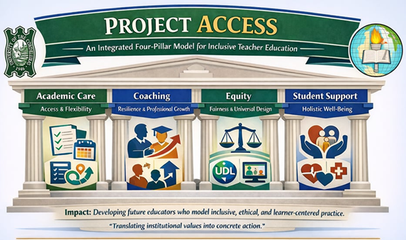 Through Innovation, Project ACCESS adopts flexible, evidence-based, and adaptive approaches to teaching, assessment, and student support, enabling the institution to respond effectively to diverse and evolving learner needs. Embracing Diversity, the program recognizes individual differences as strengths and ensures equitable learning opportunities for students who may experience physical, medical, psychosocial, and situational barriers. In doing so, Project ACCESS not only supports student success but also models inclusive practice for future educators, reinforcing UC-CTE’s role as a values-driven institution committed to access, excellence, and social responsibility.