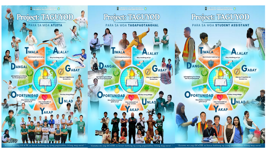 Ang TAGUYOD ay sumasagisag sa patuloy na pagtitiwala, paggabay, at malasakit ng UC-CTE sa mga mag-aaral na sabay na nag-aaral, naglilingkod, nagsasanay, at nagtatrabaho.